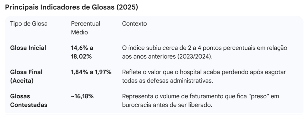 Esses erros não são casos isolados. Dados recentes do Observatório Anahp mostram que as glosas seguem sendo um dos principais gargalos financeiros de clínicas e hospitais no Brasil