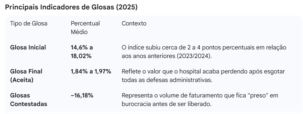 Esses erros não são casos isolados. Dados recentes do Observatório Anahp mostram que as glosas seguem sendo um dos principais gargalos financeiros de clínicas e hospitais no Brasil